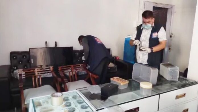 रुद्रपुर। उधमसिंह नगर जिले के रुद्रपुर ट्रांजिट कैंप थाना क्षेत्र में चोरों ने एक ज्वेलरी शॉप से लाखों रुपए के जेवरात और नगदी पर हाथ साफ कर लिया। बताया जा रहा है कि घटना के वक्त घर में सुनार का बेटा मौजूद था। लेकिन उसे इसकी भनक तक नहीं लगी। चोरी की सूचना पर पहुंची पुलिस ने टीम गठन कर मामले की जांच शुरू कर दी है। साथ ही घटनास्थल के आसपास लगे सीसीटीवी फुटेज खंगालने शुरू कर दिए हैं। पुलिस के मुताबिक, ट्रांजिट कैंप थाना क्षेत्र में जनपथ रोड पर वनखंडी कॉलोनी निवासी राजेश रस्तोगी के घर के ग्राउंड फ्लोर में ‘अल्मोड़ा पहाड़ी सुनार’ नाम से ज्वेलरी की दुकान है। राजेश रस्तोगी इन दिनों बाहर गए हुए हैं। घर पर उनका बेटा प्रांजल रस्तोगी था। जांच के दौरान प्रांजल ने बताया कि शुक्रवार को उनके ज्वैलर्स की दुकान में सीसीटीवी कैमरे लगाने का काम चल रहा था। दुकान कर्मी अभिषेक रात 10 बजे दुकान बंद कर घर चला गया था। रात करीब 11 बजे वो नाइट क्रिकेट मैच खेलकर घर पहुंचा। जिसके बाद रात एक बजे अपने दोस्त को लेने के लिए चला गया।