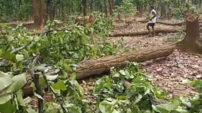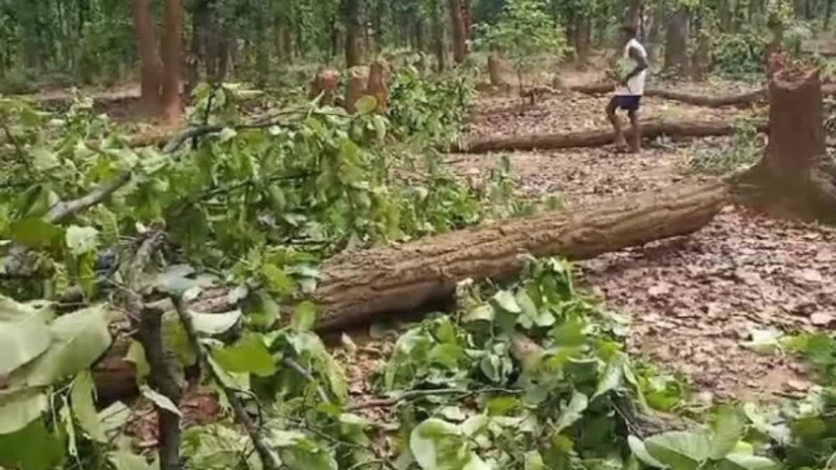 रात में पेड़ काटते तीन लोगों को पकड़ा