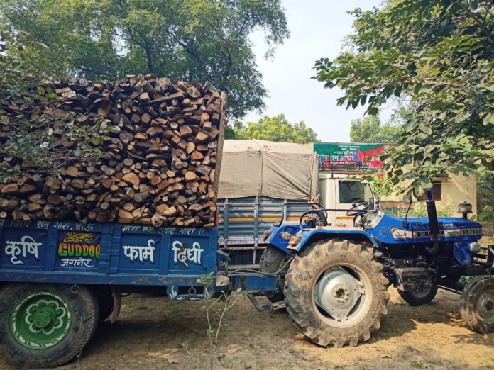 अवैध लकड़ी से भरी ट्रैक्टर-ट्राली सीज